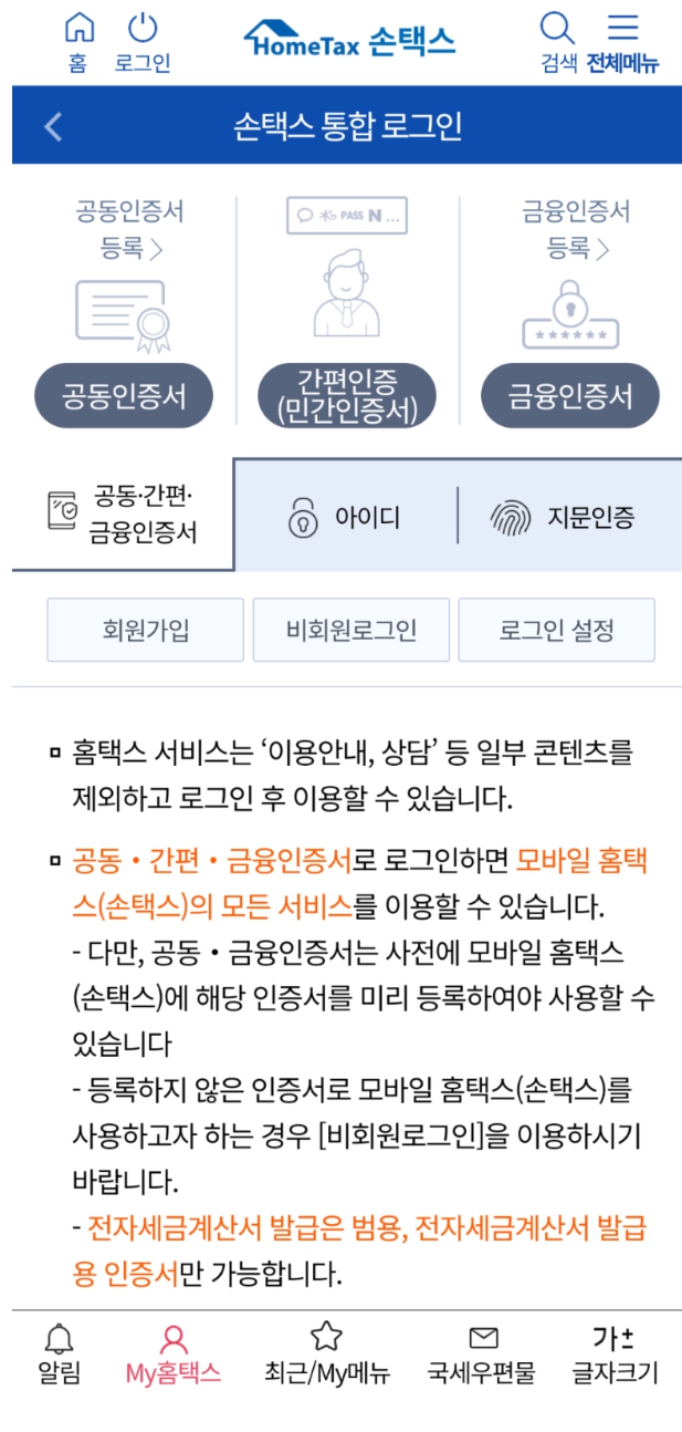 - 홈택스 접속 (PC 또는 모바일)
