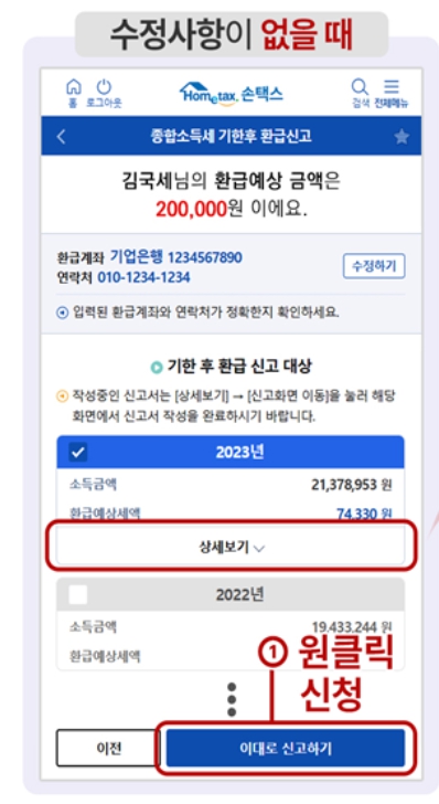- ‘원클릭 환급 신고’ 클릭